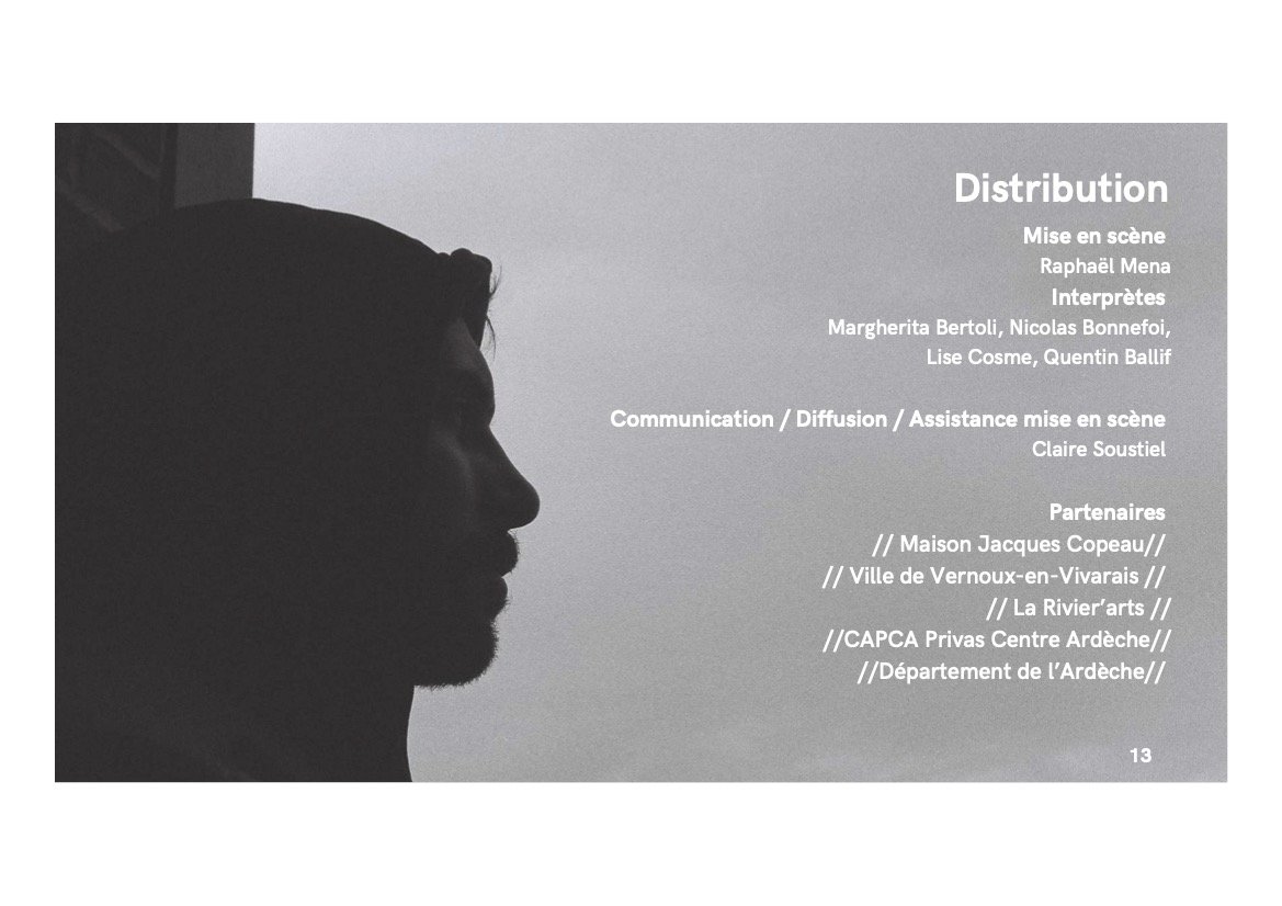 Depuis quelques années, la compagnie KAMMA travaille sur la notion de sobriété : des décors minimalistes, et surtout la mise en avant d'un texte et d'une langue par le jeu. En d'autres termes, un plateau presque vide, et un travail avec les acteurs / actrices pour que tout soit suspendu à l'interprétation des comédien.ne.s.